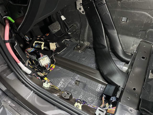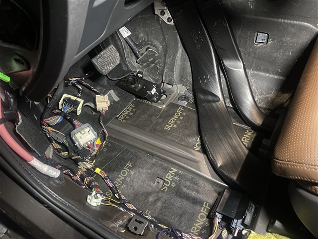 脚踏位的低频共振噪音极为严重,对此改装技师使用SU300减震胶做止振隔音处理后,再使用S0300T阻隔垫做第二层隔音处理,它采用了多种高分子材料组合而成,对低频共振噪音有出色的抑制效果。