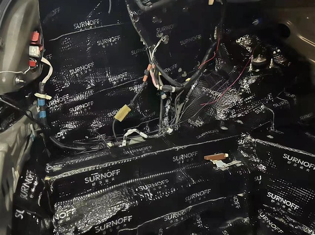 针对尾箱的共鸣噪,我们也选择了SU200减震胶进行了隔音处理,有效控制尾箱的共鸣噪音和路噪的入侵。
