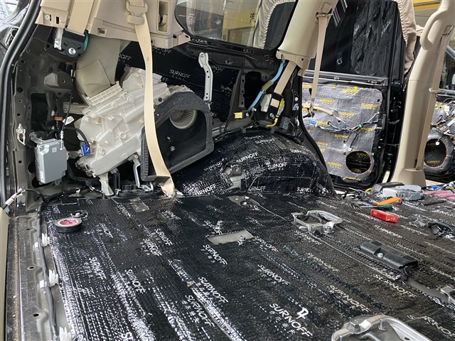 通过改装技师数小时的精心施工,将舒尔诺夫隔音材料合理搭配、紧密贴合在噪音源头,让这台兰德酷路泽的各种噪音都得到了很好的抑制,达到更好的平衡性,为车主带来了更加安静、舒适的用车环境。